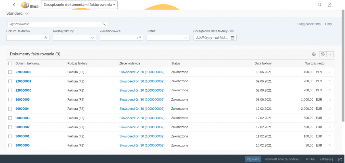 Proces zarządzania dokumentami rozliczeniowymi to jeden z bardziej wymagających modeli workflow w przedsiębiorstwie. SAP daje nam możliwość wykorzystania wielu aplikacji transakcyjnych podnosząc w wielu obszarach efektywność wykonywanej pracy. Aplikacja do zarządzania dokumentami rozliczeniowymi na platformie SAP Fiori daje możliwość zarządzania fakturami, anulowanymi fakturami, notami kredytowymi i innymi dokumentami rozliczeniowymi. Obejmuje wyświetlanie, edytowanie księgowania. Dzięki tego typu narzędziom możliwe jest m.in. sprawdzenie, dlaczego doszło do podziału dokumentu rozliczeniowego czy wygenerowania podglądu wydruku dokumentów rozliczeniowych w formie PDF.